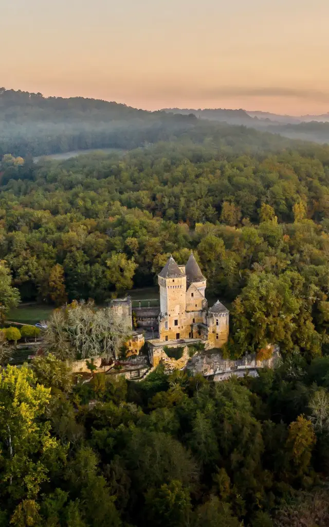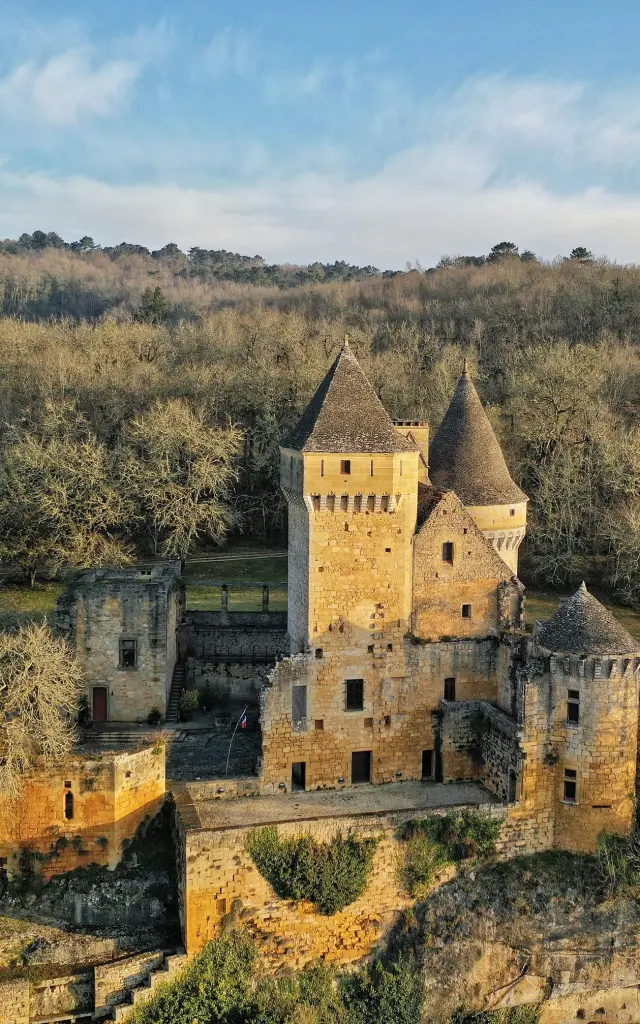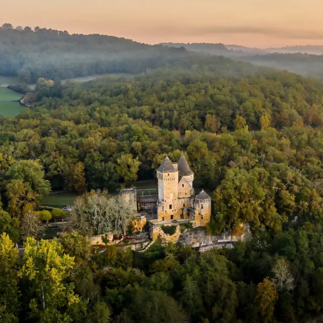 Bien que l’accès à l’intérieur du domaine soit réservé à ses propriétaires, le spectacle se joue à l’extérieur. Depuis les sentiers de randonnée de Marquay ou depuis la forteresse voisine de Commarque, le château offre un panorama digne d’un décor de film.